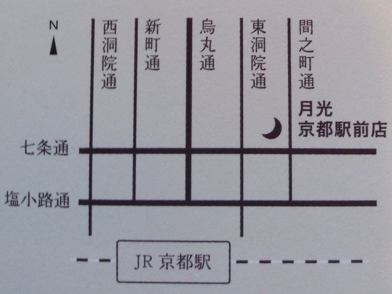 〒600-8146京都市下京区七条通東洞院東入ル材木町499セブンビル4F (月光京都駅前店内)